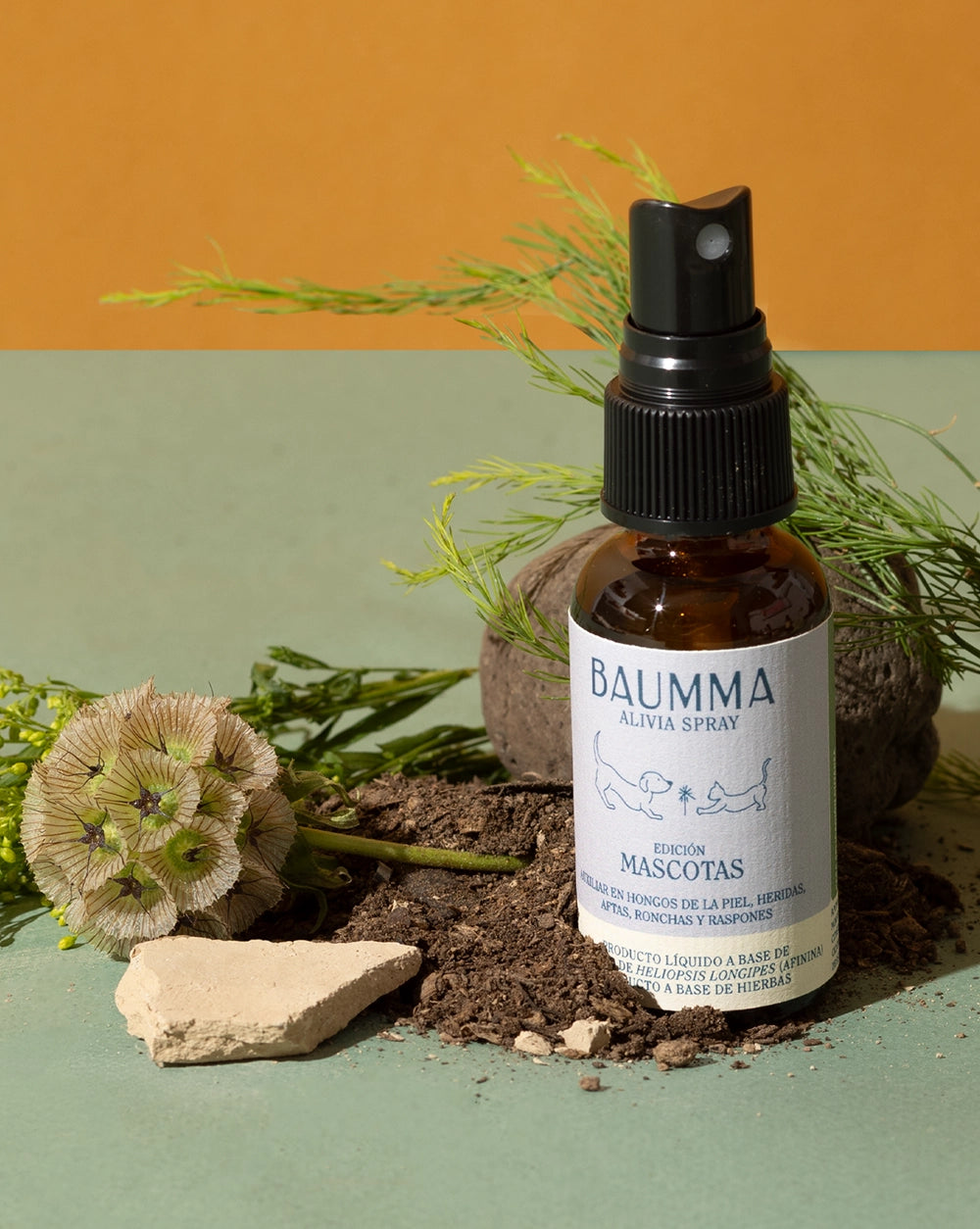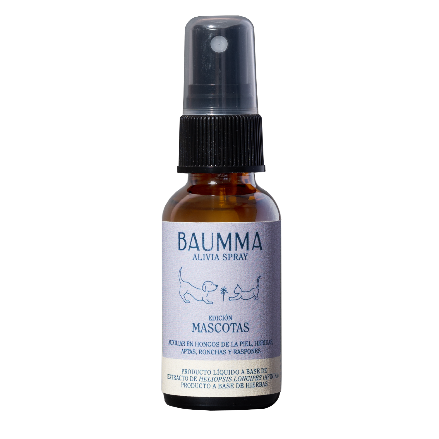 Alivia Spray en su edición Mascotas está pensada para cuidar de los peludos en casa. Esta receta es elaborada con el extracto de la raíz de la planta endémica mexicana, Heliopsis longipes . Sirve como bactericida, antiséptico, cicatrizante y es auxiliar en heridas para la piel de tu mascota. También funciona como anestésico para quitar el dolor. Con ingredientes naturales para evitar que se lama las áreas afectadas.