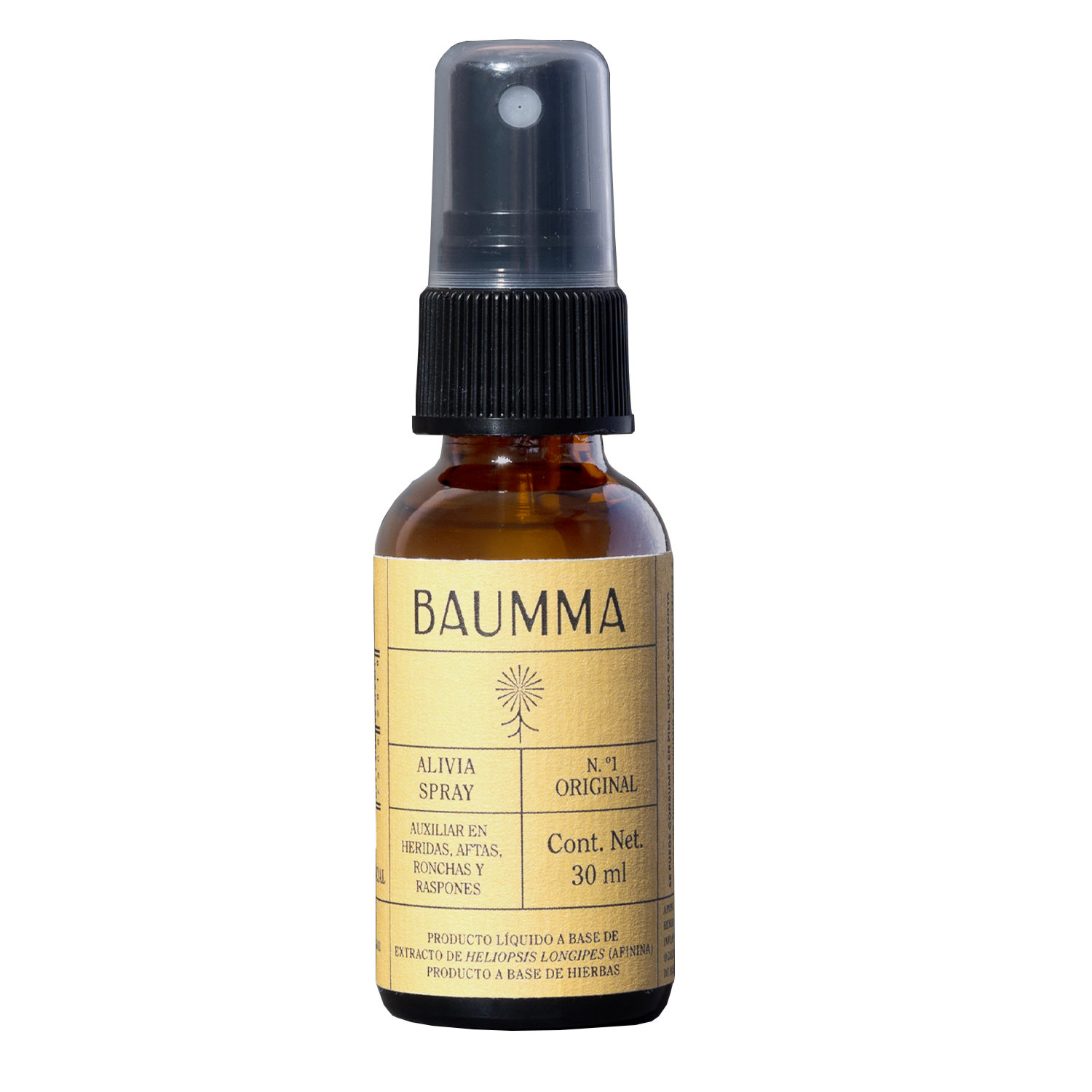 Nuestro primer producto es Alivia Spray, un spray a base de la raíz de la planta endémica mexicana, Heliopsis longipes . Sirve como bactericida, antiséptico, anestésico y es auxiliar en heridas tanto para la piel como para la boca y la garganta. También actúa sobre el sistema nervioso para generar un efecto anestésico, aliviando el dolor tanto en la boca como en la piel. Alivia, cura y cicatriza heridas o infecciones.