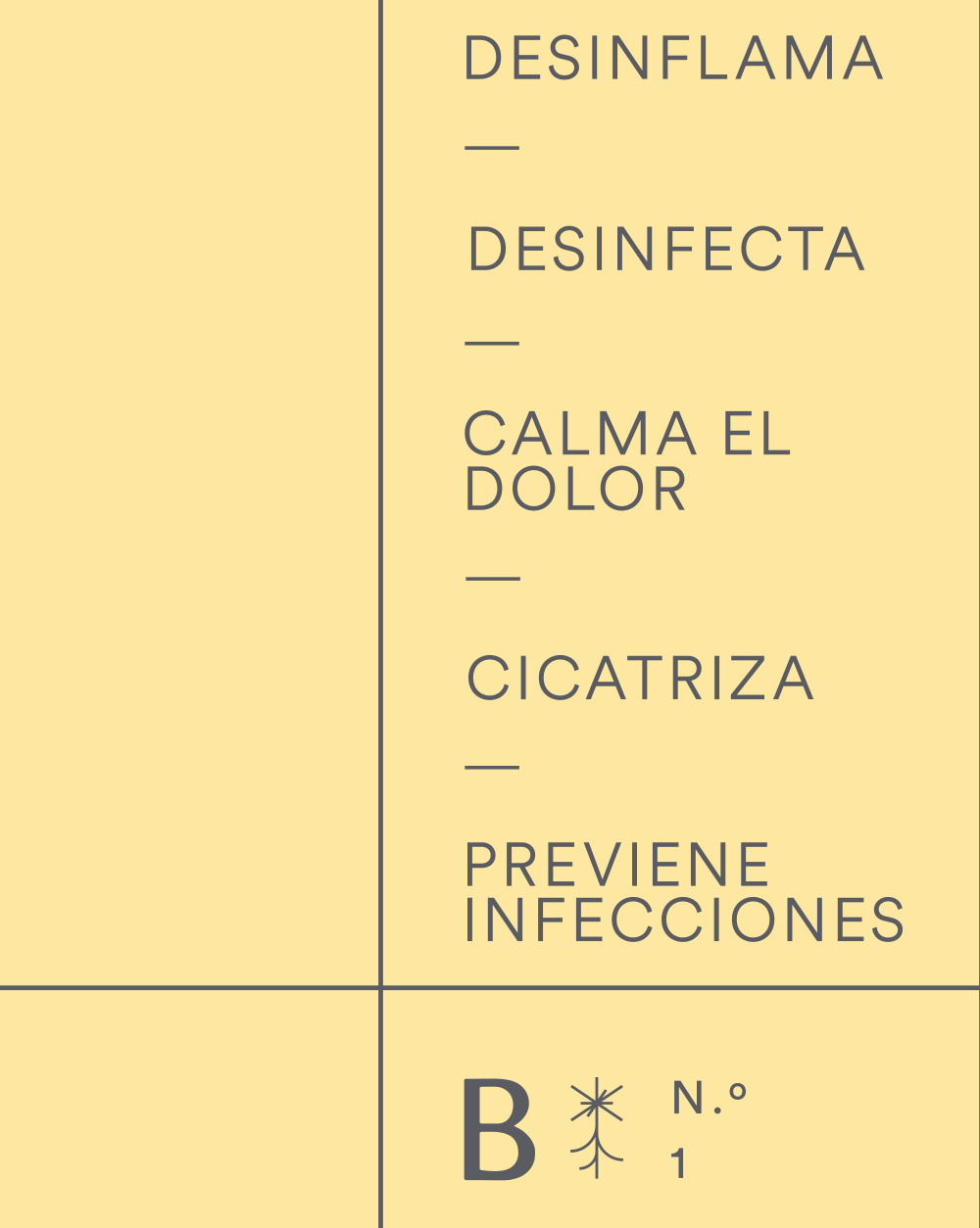 Contiene propiedades anestésicas. Alivia el malestar causado por las heridas.